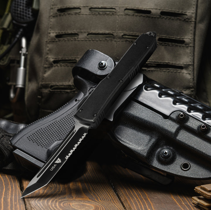 Introducing the Patriot Tactical Overwatch, the pinnacle of OTF (Out-The-Front) knives, engineered to perfection and crafted with precision to provide you with the ultimate cutting tool.