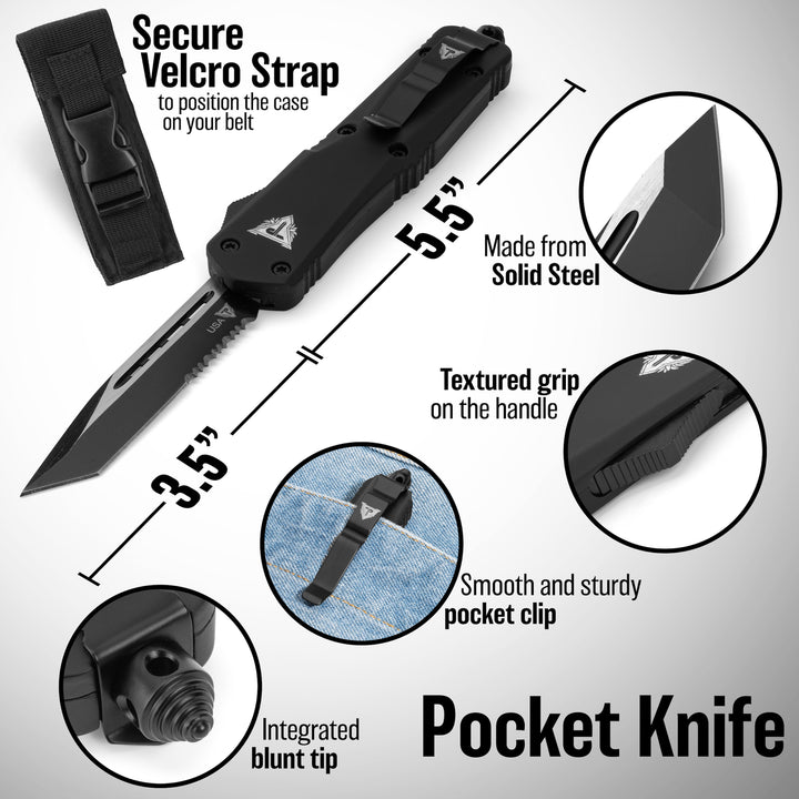 Precision Engineering: The Patriot Tactical O.G. is designed with meticulous attention to detail. It features a state-of-the-art automatic deployment mechanism, allowing the blade to deploy swiftly and reliably with just a push of a button. The mechanism is engineered for smooth and consistent operation, ensuring quick and effortless deployment whenever you need it.