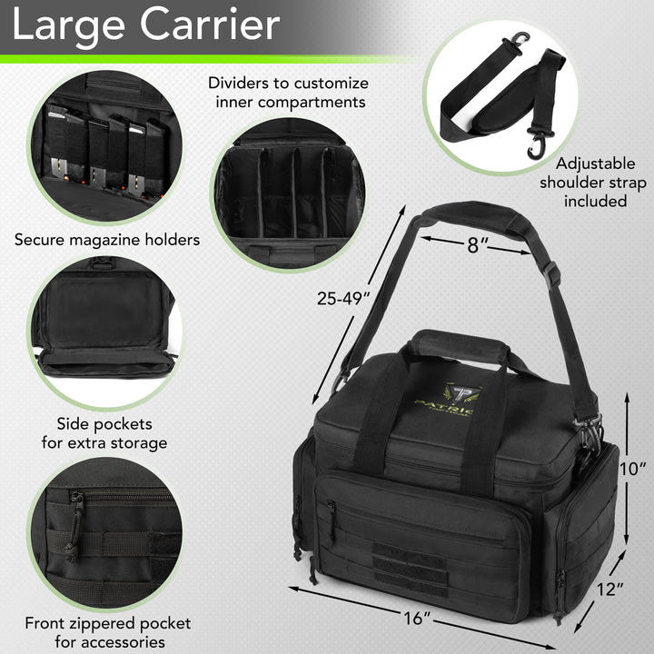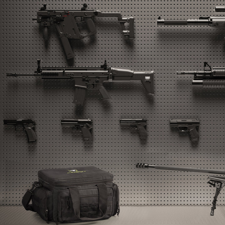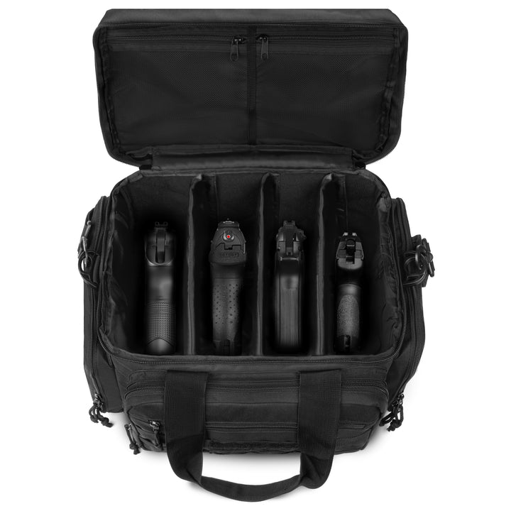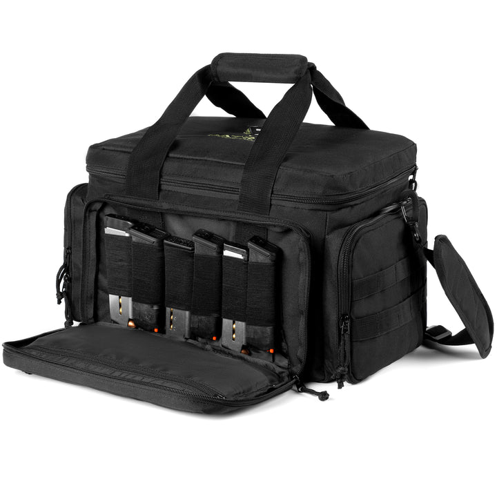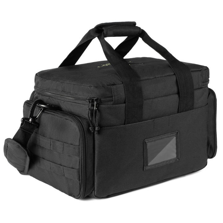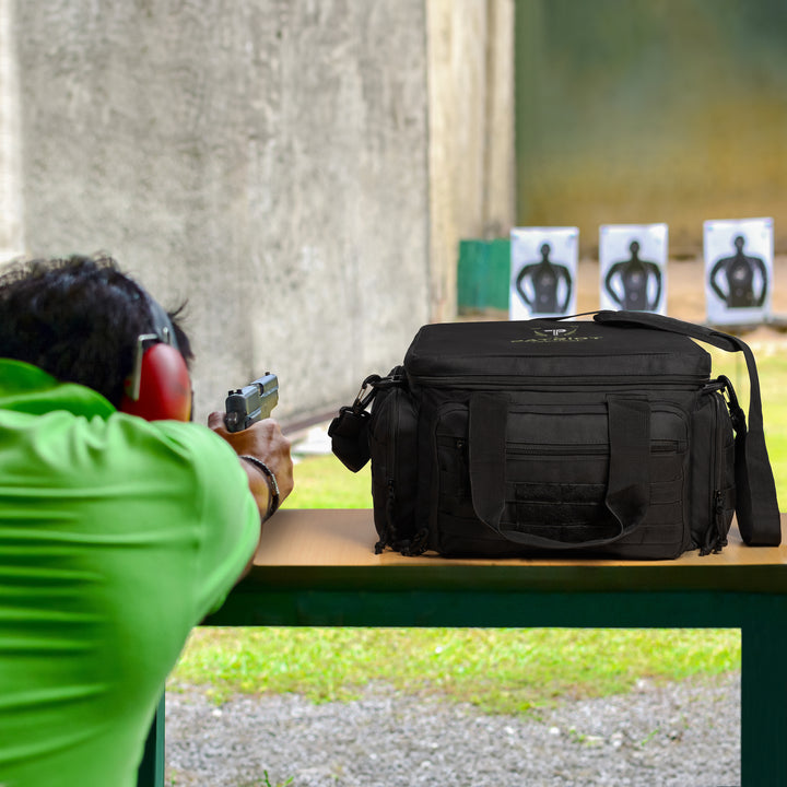 Our Range Bag is the perfect companion for the shooting range. Made from durable fabric, this heavy-duty gun range bag provides protection, convenience, and organization for your gear when you're on the go. Roomy enough to fit your firearm, ammo, and other shooting essentials, the Range Bag is a must-have for your next trip to the range.